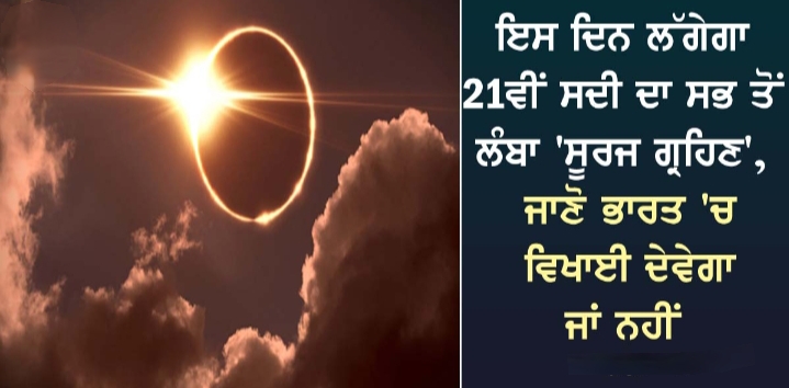 ਇਸ ਦਿਨ ਲੱਗੇਗਾ 21ਵੀਂ ਸਦੀ ਦਾ ਸਭ ਤੋਂ ਲੰਬਾ ”ਸੂਰਜ ਗ੍ਰਹਿਣ”, ਜਾਣੋ ਭਾਰਤ ”ਚ ਵਿਖਾਈ ਦੇਵੇਗਾ ਜਾਂ ਨਹੀਂ