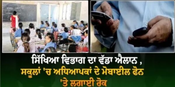 ਸਿੱਖਿਆ ਵਿਭਾਗ ਦਾ ਵੱਡਾ ਐਲਾਨ , ਸਕੂਲਾਂ ‘ਚ ਅਧਿਆਪਕਾਂ ਦੇ ਮੋਬਾਈਲ ਫੋਨ ‘ਤੇ ਲਗਾਈ ਰੋਕ