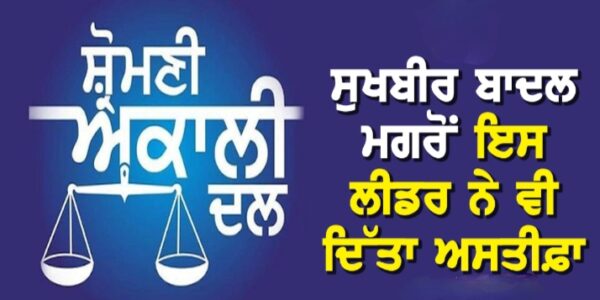 ਅਕਾਲੀ ਦਲ ਨੂੰ ਝਟਕਾ! ਸੁਖਬੀਰ ਬਾਦਲ ਮਗਰੋਂ ਇਸ ਲੀਡਰ ਨੇ ਵੀ ਦਿੱਤਾ ਅਸਤੀਫ਼ਾ