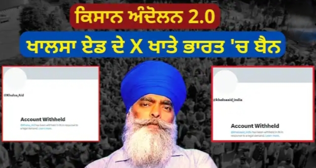 ਖਾਲਸਾ ਏਡ ਤੇ ਖਾਲਸਾ ਏਡ ਇੰਡੀਆ ਦੇ ਐਕਸ ਖਾਤਿਆਂ ਨੂੰ ਭਾਰਤ ਵਿੱਚ ਬੈਨ ਕਰ ਦਿੱਤਾ ਗਿਆ ਹੈ। ਕਿਸਾਨ ਅੰਦੋਲਨ ਵਿੱਚ ਖਾਲਸਾ ਏਡ ਦੀ ਟੀਮ ਵੱਲੋਂ ਲੰਗਰ ਲਾਏ ਜਾ ਰਹੇ ਹਨ। ਦੱਸ ਦਈਏ ਕਿ ਖਾਲਸਾ ਏਡ ਇੱਕ ਇੰਟਰਨੈਸ਼ਨਲ NGO ਹੈ ਜੋ ਦੁਨੀਆ ਦੇ ਹਰ ਕੋਨੇ ਵਿੱਚ ਲੋੜਵੰਦਾਂ ਦੀ ਮਦਦ ਲਈ ਅੱਗੇ ਆਉਂਦਾ ਹੈ।