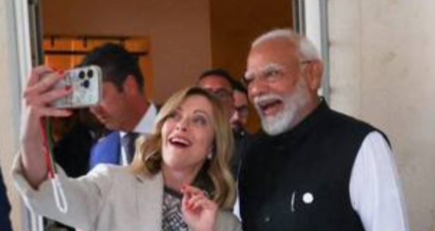 ਪ੍ਰਧਾਨ ਮੰਤਰੀ ਨਰਿੰਦਰ ਮੋਦੀ ਜੀ-7 ਸੰਮੇਲਨ ਦੌਰਾਨ ਇਟਲੀ ਦੇ ਪ੍ਰਧਾਨ ਮੰਤਰੀ ਜਾਰਜੀਆ ਮੇਲੋਨੀ ਨਾਲ ਵੀ ਮਿਲੇ। ਇਸ ਦੌਰਾਨ ਦੋਹਾਂ ਦੇਸ਼ਾਂ ਦੇ ਨੇਤਾਵਾਂ ਨੇ ਕਈ ਅਹਿਮ ਮੁੱਦਿਆਂ ‘ਤੇ ਗੱਲਬਾਤ ਕੀਤੀ। ਇਸ ਦੌਰਾਨ ਇਟਲੀ ਦੇ ਪ੍ਰਧਾਨ ਮੰਤਰੀ ਜਾਰਜੀਆ ਮੇਲੋਨੀ ਨਾਲ ਪੀਐਮ ਮੋਦੀ ਦੀ ਸੈਲਫੀ ਵੀ ਸੋਸ਼ਲ ਮੀਡੀਆ ‘ਤੇ ਵਾਇਰਲ ਹੋ ਰਹੀ ਹੈ।