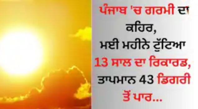 Punjab Weather: ਪੰਜਾਬ ‘ਚ ਗਰਮੀ ਦਾ ਕਹਿਰ, ਮਈ ਮਹੀਨੇ ਟੁੱਟਿਆ 13 ਸਾਲ ਦਾ ਰਿਕਾਰਡ, ਤਾਪਮਾਨ 43 ਡਿਗਰੀ ਤੋਂ ਪਾਰ