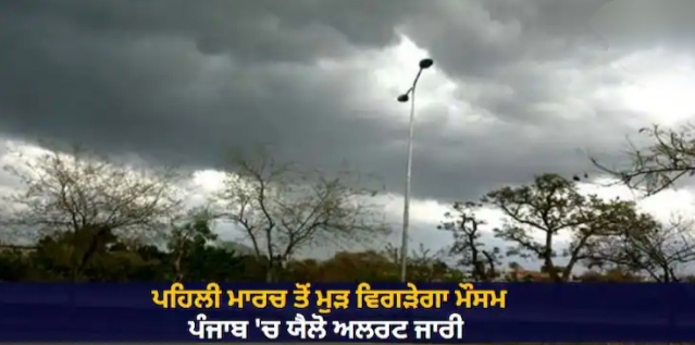 ਪੰਜਾਬ ਵਿੱਚ ਮੌਸਮ ਮੁੜ ਕਰਵਟ ਲੈਣ ਜਾ ਰਿਹਾ ਹੈ। ਪਹਿਲੀ ਮਾਰਚ ਤੋਂ ਮੌਸਮ ਵਿੱਚ ਤਬਦੀਲੀ ਆਏਗੀ। ਇਸ ਦੌਰਾਨ ਬਾਰਸ਼ ਤੇ ਠੰਢੀਆਂ ਹਵਾਵਾਂ ਕਾਰਨ ਪਾਰਾ ਡਿੱਗੇਗਾ। ਮੌਸਮ ਵਿਭਾਗ ਨੇ ਯੈਲੋ ਅਲਰਟ ਜਾਰੀ ਕਰਦਿਆਂ ਲੋਕਾਂ ਨੂੰ ਸਾਵਧਾਨ ਰਹਿਣ ਲਈ ਕਿਹਾ ਹੈ।